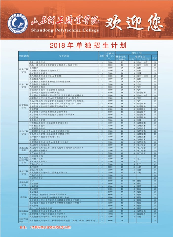 山东理工职业学院2018年单独招生简章